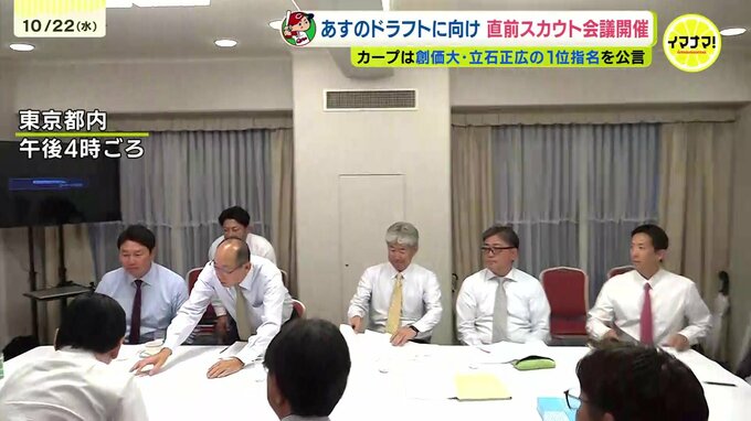 カープはすでにドラフト1位で創価大・立石正広選手を指名することを公表。競合必至とされるなか、カープも最終的な指名戦略などの確認を行いました。