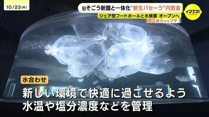 広島市内中心部に新たなにぎわいが生まれると思うと期待が膨らみますよね。フードホールは、VTRにあったように注文から片付けまでスタッフが行ってくれるということで、一般的なフードコートよりも利用しやすいかもしれません。そして、町中の水族館は幻想的な雰囲気で気になります。オープン前の準備の舞台裏を取材しています。