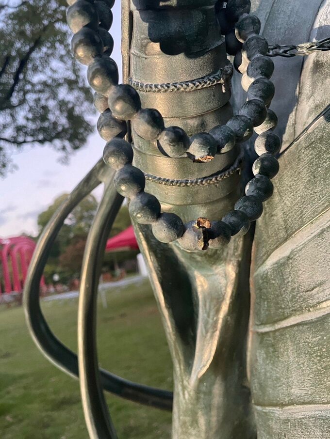 福山市によりますと、僧侶の姿をした像が手にする数珠の房の部分が破損し脱落していたということです。