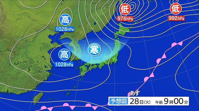 28日(火)上空に冷たい空気入り晴れてもひんやり 朝晩冷え込み強まる