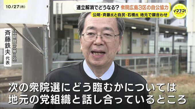 自民党との連立解消後、公明党の斉藤鉄夫代表が初めて広島を訪れました。自身の選挙区である広島3区について、何を語ったのでしょうか。