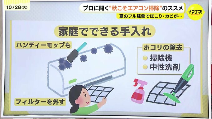小形さんによると「エアコンを定期的に動かすほうが、カビの抑制に繋がる。暖房でファンを回すことで、次の夏にきれいな状態で使える」とのことです。