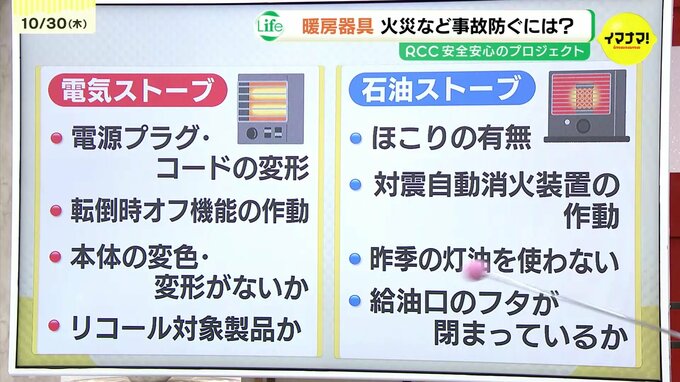 30日の朝は、今季1番の冷え込みとなったところもありましたが、そろそろ暖房器具を使い始める人も多い時期です。正しく使わないと事故につながることもあります。