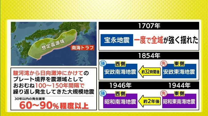 南海トラフ地震が今後30年以内に発生する確率は「60%~90%程度以上」とされています