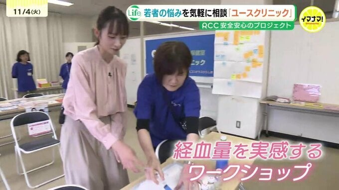 ユースクリニックの会場では、色水を使って経血量を実感できるワークショップも行われました。