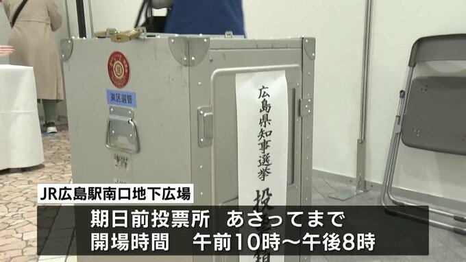 9日に投開票される県知事選では市内8つの区の有権者が投票できるほか、県議会安佐北区選挙区の補欠選挙も対象です。会場では職員に誘導された有権者がそれぞれ票を投じていました。