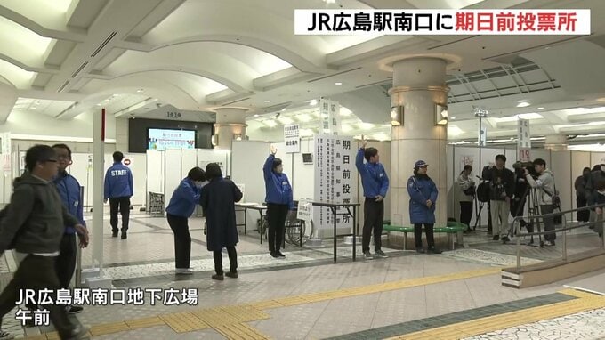 11月9日投開票の県知事選挙と県議会議員補欠選挙の期日前投票所が、JR広島駅南口に設けられました。