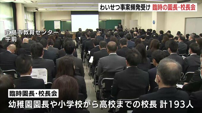 教職員によるわいせつ事案が頻発していることを受けて、6日、広島市教育委員会は臨時の園長・校長会を開きました。