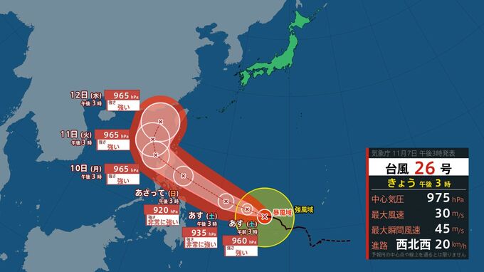 台風の中心が予報円に入る確率は70%です。今後の台風情報に注意してください。