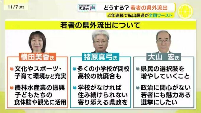 若者の県外流出について、候補者の訴えです。