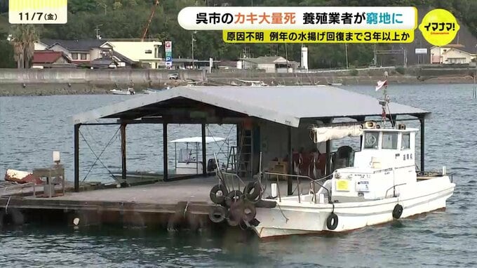 呉市は県と協力してカキの大量死の原因を早急に調べるとともに、被害の範囲を特定した上で資金面などを含め養殖業者を支援することにしています。