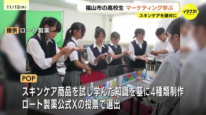 広島県福山市の高校で地元のドラッグストアと製薬メーカーが協力し、スキンケアを題材にしたマーケティングの授業が行われました。