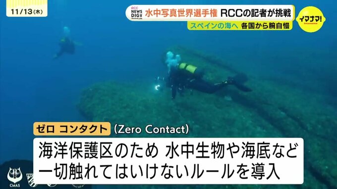 今回の大会が行われたスペインの海は、海洋保護区になっています。競技中、水中生物や海底など、すべての環境に一切触れてはいけない「ゼロコンタクト」という厳格なルールが初めて導入されました。撮影だけでなくダイビングの技術も求められる難易度の高いものとなりました。