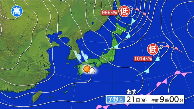 21日(金)おおむね晴れる 日中は日差しが暖かく過ごしやすい