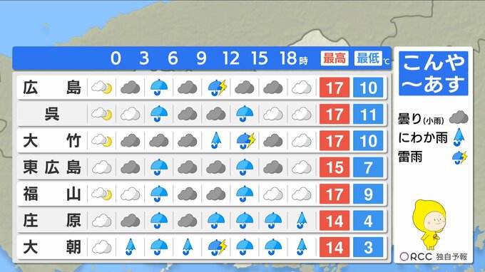 あすは上空にこの時期としては強い寒気が流れ込みます。県内は広く大気の状態が非常に不安定になります。県内は広く局地的に雷雲が発達しやすくなるため、落雷や突風・急な強雨にご注意ください。