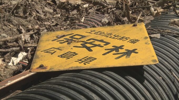 所有者が不明の「盛り土」で倒れていた「保安林」の看板…