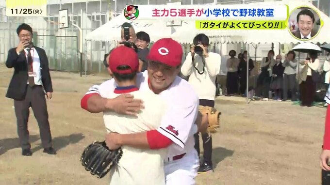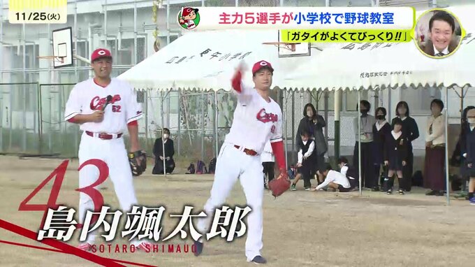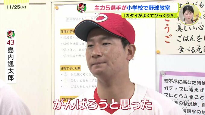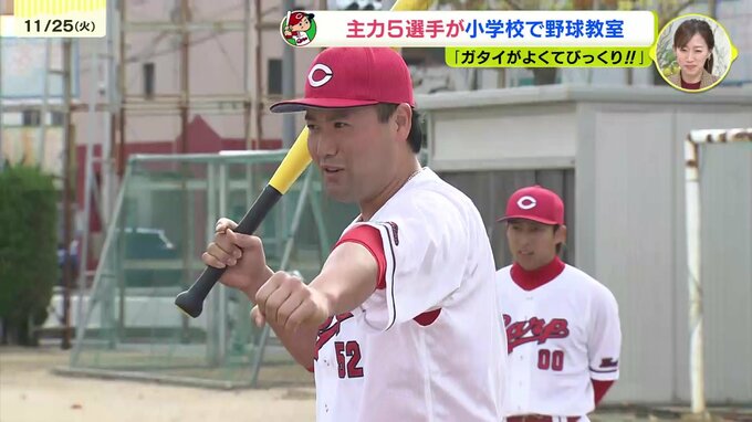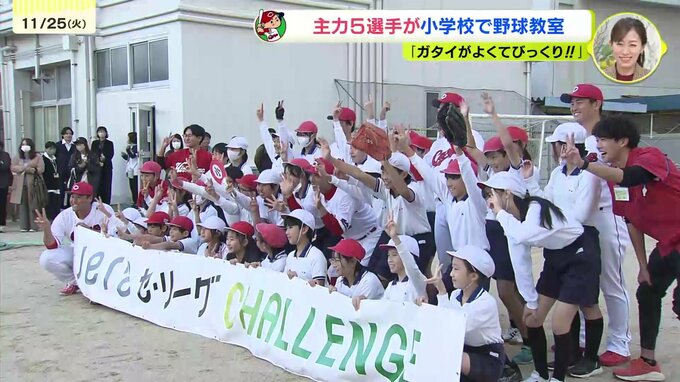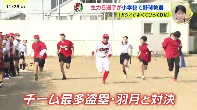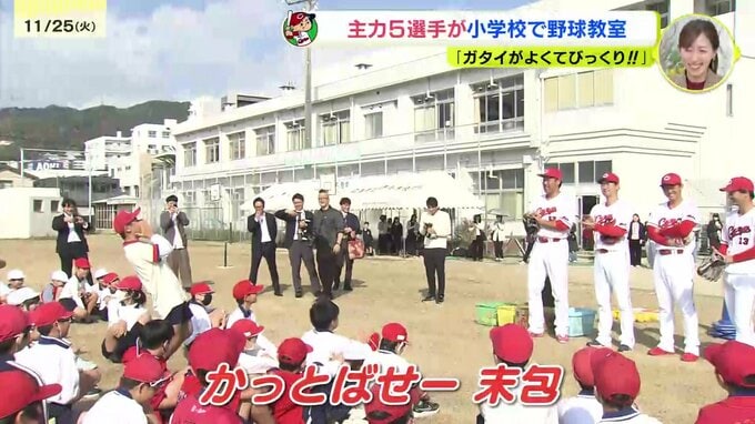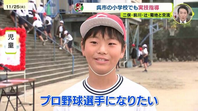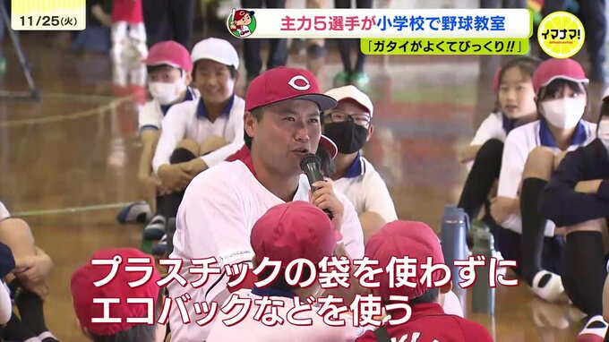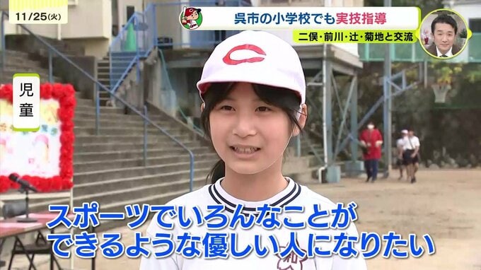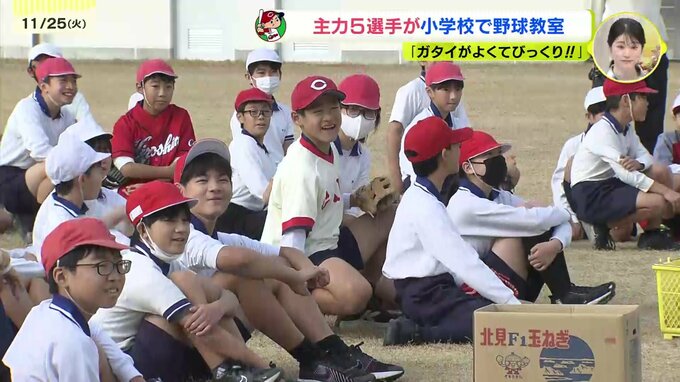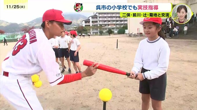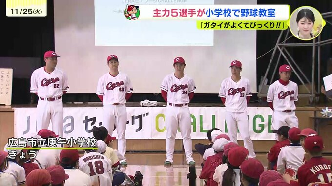 カープの選手たちが児童たちとふれあう授業が25日、広島市と呉市の小学校で行われました。