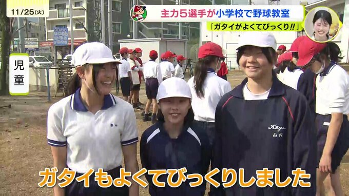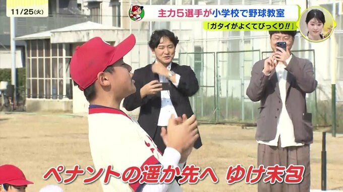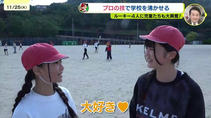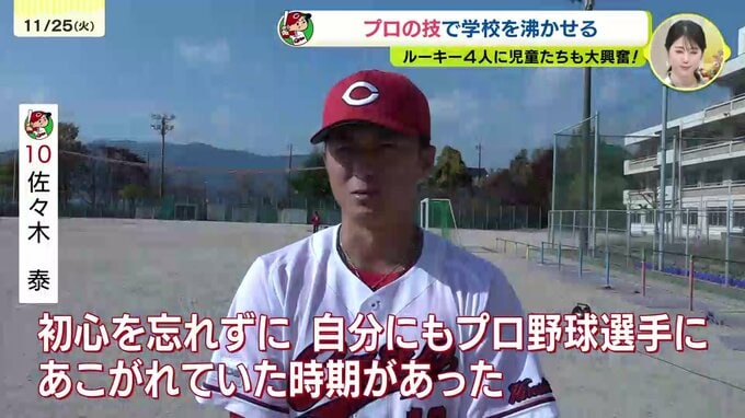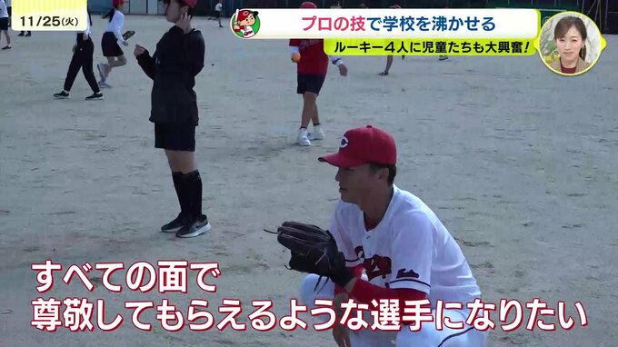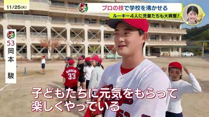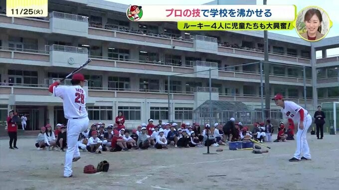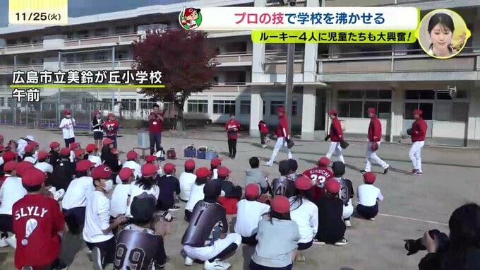 プロの技で学校を沸かせたルーキーたち。こどもたちの無邪気な姿に 刺激を受けて若鯉たちもプロ野球選手としての自覚が高まったようです。