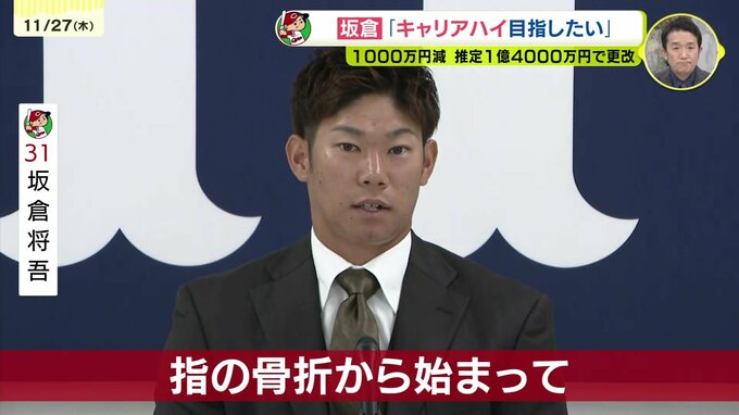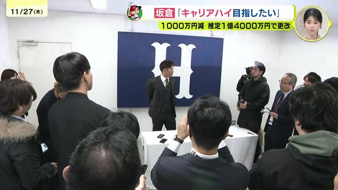 坂倉は1000万円ダウンの推定年俸1億4000万円でサインしました。