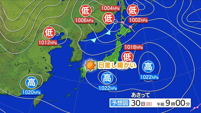【11/29・30(土日)広島天気】すっきり晴れる 土曜は今季1番の冷え込み 日曜は日差し暖かい 2025年11月28日(金) 18:44 国内 天気 30日(日)高気圧に覆われて晴れる 日差し暖かい あさって30日(日)も、高気圧に覆われて晴れる予想です。上空の寒気がゆるみ、暖かい空気が入るため、日中は日差しの暖かさを感じられるでしょう。