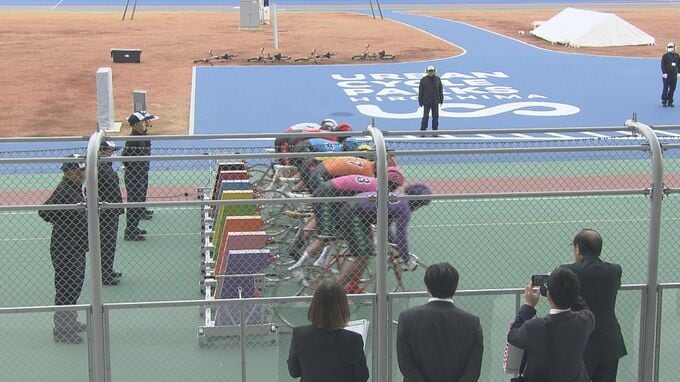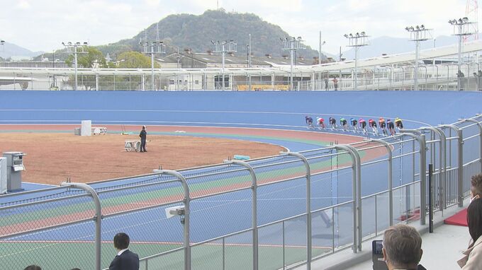 新名称は、「アーバンサイクルパークス広島」。11月30日のレース再開を前に、競輪選手による、走行デモンストレーションも行われました。