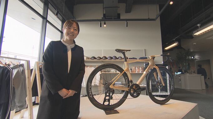 「"せとうちサイクルステイズ広島宇品"のホテルの受付近くには、200万円する自転車を金箔で包み込んだ、豪華な自転車がおでむかえしてくれます」