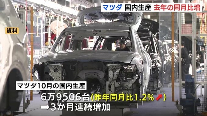自動車メーカーのマツダが10月の国内生産実績を発表しました。国内生産は、去年の同じ月より増加しました。