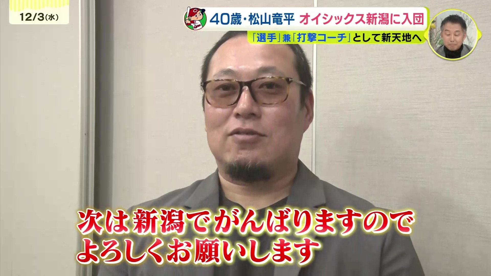 「(カープファンの皆さま)18年間本当にお世話になりました。次は新潟でがんばりますのでよろしくお願いします!」