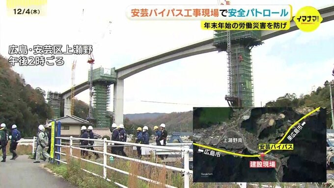 12月4日は41人が作業にあたる現場を、広島労働局の宮原真太郎局長らが訪れ、「寒くなるとけがが増えやすくなるので注意してほしい」と呼びかけました。