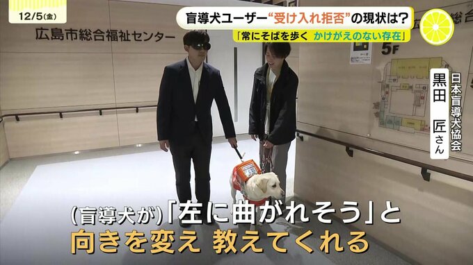 では盲導犬が、ユーザーの目としてどう機能するのか。視界がぼんやり見えるゴーグルをつけ、一緒に歩きました。