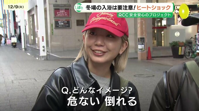 「(Q.ヒートショックって聞いたことありますか?)はい(Qどんなイメージ?)危ない。倒れるやつですよね」