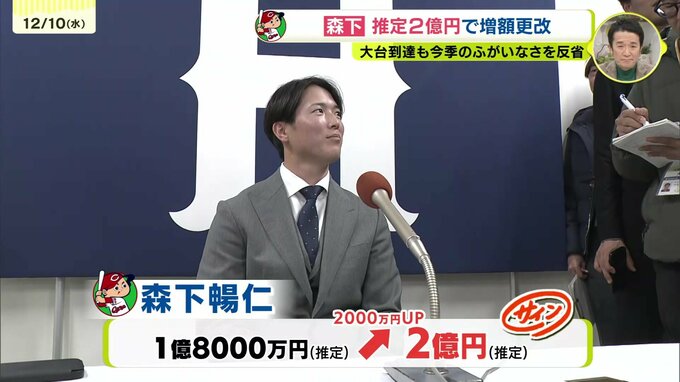 それでも、規定投球回をクリアしチームに貢献した森下は1億8000万円から2000万円アップの推定2億円で更改しました。