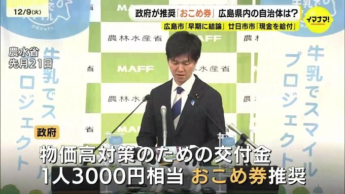 政府が食料品の物価高対策として推奨する「おこめ券」についてです。様々な議論があり、広島県内の自治体の担当者も頭を悩ませています。