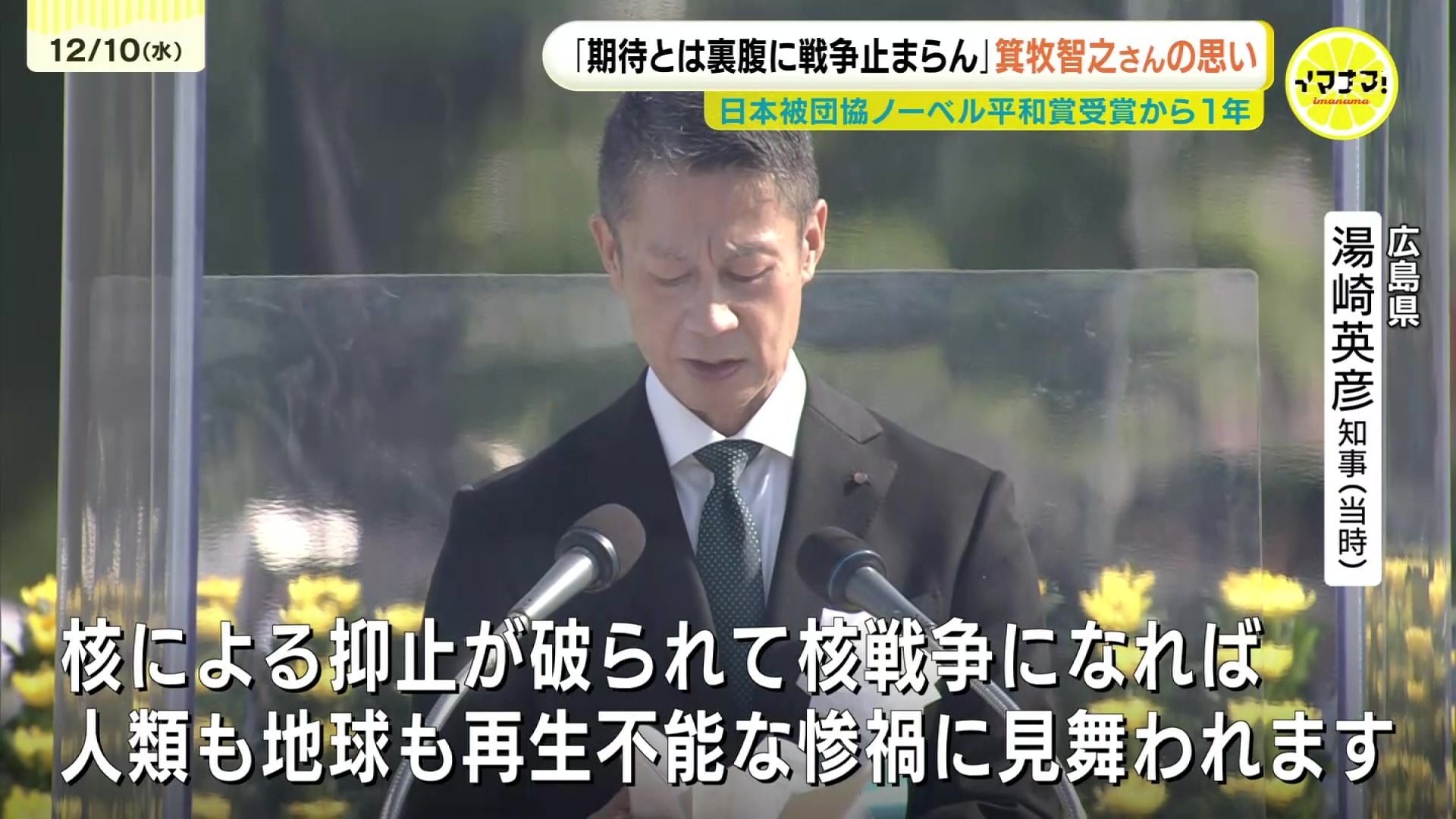 日本被団協がノーベル平和賞を受賞して12月10日で1年です。被爆者らは受賞後も“核のタブー”を伝え続けましたが、「核なき世界」への道筋はいまだ見通せないのが現状です。授賞式に出席した広島の被爆者で代表委員の箕牧智之さんを取材しました。