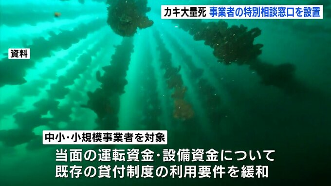 広島県内で養殖カキが大量死している問題で、中国経済産業局は事業者の資金繰り支援のための相談窓口を設置しました。