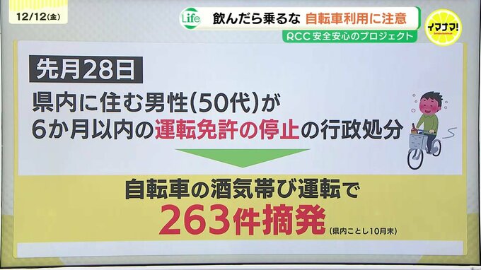 県内で11月28日、自転車の酒気帯び運転で初めて6ヶ月以内の運転免許停止の行政処分が下されました。