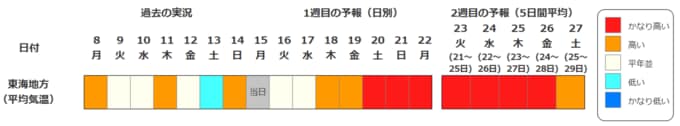 東海地方は21日頃から