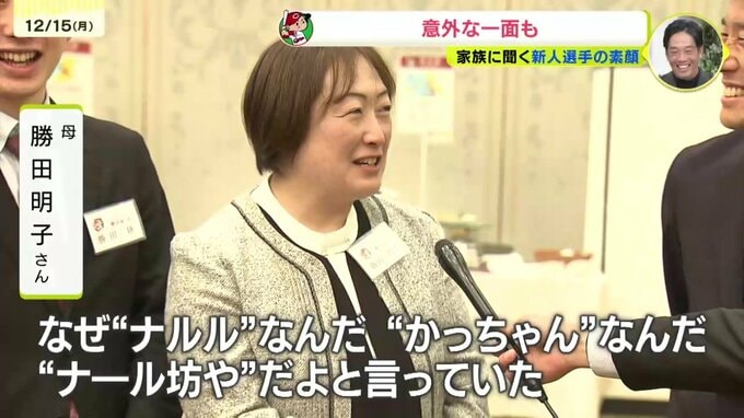 「さっきあだ名で(父から)ご指摘をもらったので改名しようかと思います。自分としてはナルルでいきたかったんですけど、ナルルか、カープ坊やがあるじゃないですか、それをナ―ル坊やにしようかなと。(発案は)お父さん。」