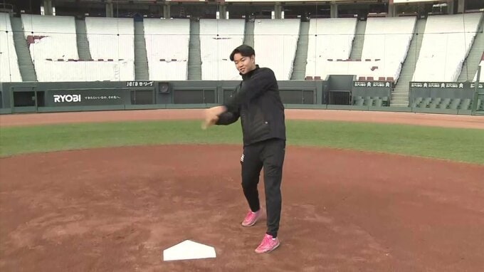 「マウンドから見える景色がすごくて観客と近くて投げやすい球場だと感じました。観客がいる中をイメージしてシャドーピッチングしました」