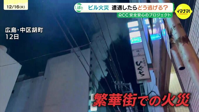 12日深夜、広島市随一の繁華街で、男性2人が死傷する火事がありました。火事が起きたのは雑居ビル。もしたまたま居合わせたら、どのように行動すればいいのでしょうか?
