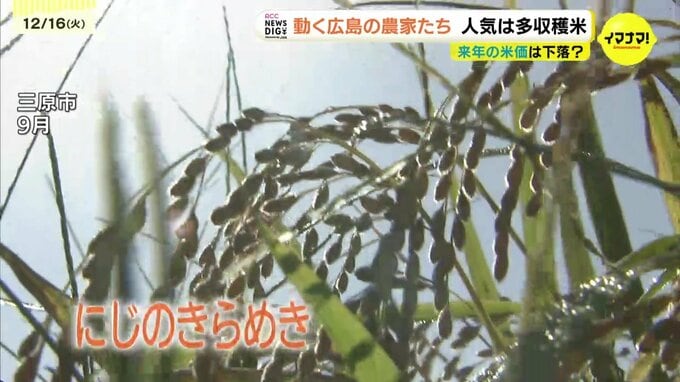 米価下落の対応策としてJAの担当者があげたのが、多収穫米「にじのきらめき」の栽培です。実は、世羅町の法人でも同じことを考えていました。この法人では2026年、王者『コシヒカリ』より『にじのきらめき』を多く作る計画です。赤屋地区では2023年、初めてこのコメを栽培しました。それをわずか3年で、面積を10倍、15倍に増やす…一体、何が魅力なのでしょうか?
