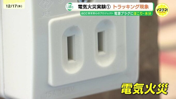 広島市消防局が特に啓発に力を入れているのが、「電気火災」です。電気配線器具による出火は、コンロやタバコの次に多く、今回特別に火災実験を取材させてもらいました。