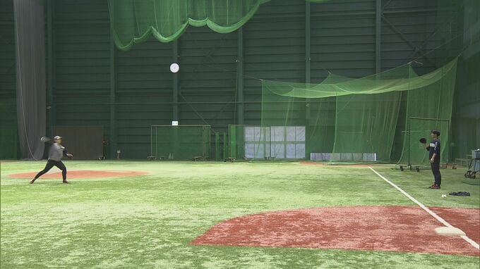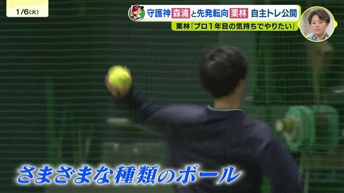 栗林がランニングしている間、森浦は様々な種類のボールを使って調整していました。