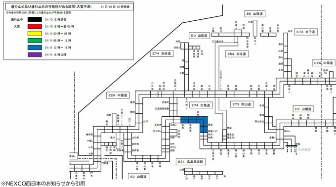 大動脈「山陽道」も 中国・四国地方の予防的通行止めの可能性がある区間は?