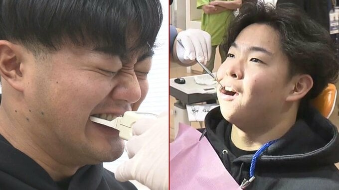 アスリートにとって、パフォーマンスを左右するといわれる「歯」。その状態をチェックするために新人選手たちが歯科検診を行いました。