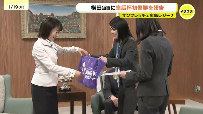 女子サッカー日本一を決める皇后杯で初優勝に輝いたサンフレッチェ広島レジーナが横田知事を表敬訪問しました。