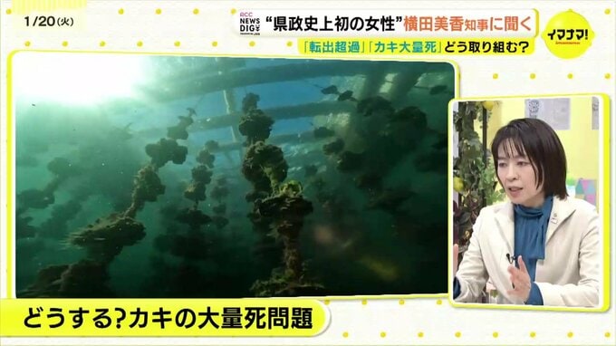 青山アナウンサー:一方で喫緊の課題として県の特産品であるカキの大量死問題というのが挙げられていますね。