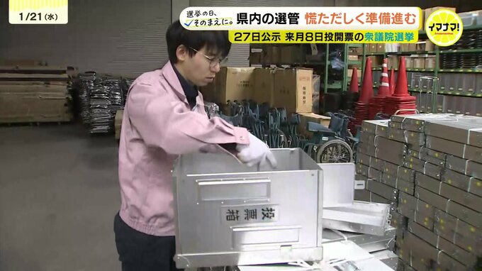 福山市選管では、解散の意向が報じられた1月10日から、急ピッチで作業を進めています。投票箱や投票用紙の交付機など、選挙関係の備品の準備も進めます。10日以降、職員は、連日夜遅くまで事務作業に追われているといいます。