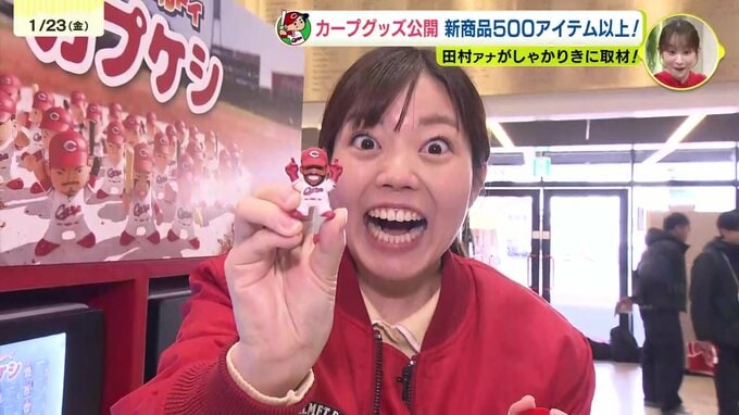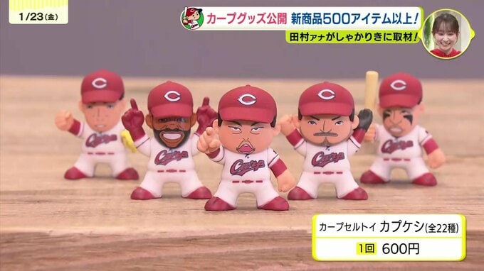 去年は売り切れたカプセルトイのカープ消しゴム。田村アナが回して出てきた選手は・・・