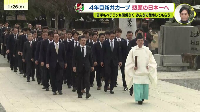 8年ぶりのリーグ優勝奪還へ。新井カープがキャンプインを前に必勝祈願を行いました。